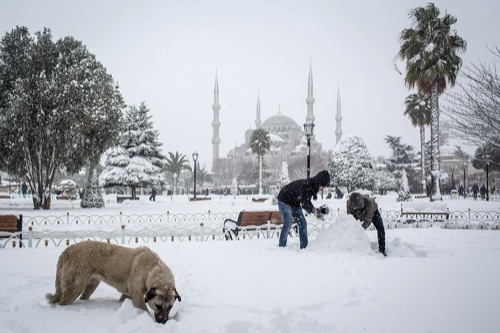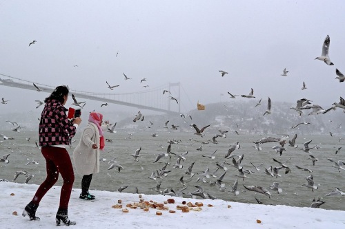É o maior nevão da última década - diz quem sabe destas coisas. Desde sexta à noite que praticamente não parou de nevar, em Istambul. As temperaturas baixaram para valores que arrepia só de imaginar, o vento forte só piora... e em algumas zonas da cidade a neve chegou aos 120cm de altura. Mais de um metro, sim! Istambul está praticamente paralisada. Mais de mil voos foram cancelados no fim de semana e hoje. O Bósforo está fechado à navegação, por falta de visibilidade. As estradas, já normalmente caóticas, estão impossíveis, devido a centenas de acidentes provocados pelo piso escorregadio. As escolas encerraram hoje. Muitas empresas estão a funcionar a "meio gás". Só o Metropolitano é que parece fazer horas extra, estando aberto dia e noite, para aliviar o caos à superfície. Mas nem tudo é mau. Há quem se divirta a passear e a tirar fotografias na neve. Afinal, não é todos os dias que Istambul acorda assim: AFP Ozan Kose/AFP AFP Chris McGrath/Getty Images Chris McGrath/Getty Images Mert Akyol/Depo Photos Getty Images Getty Images AFP Chris McGrath/Getty Images AA Photo Yasin Akgul/AFP Chris McGrath/Getty Images Tolga Bozoglu/EPA Getty Images Murad Sezer/Reuters Yasin Akgul/AFP Yasin Akgul/AFP Ozan Kose/AFP Chris McGrath/Getty Images |